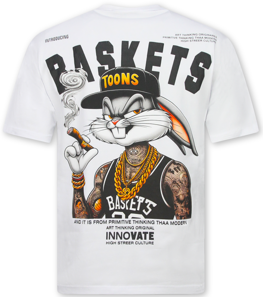 T shirt Heren met Print - Oversized T shirt Heren - T-shirts Heren Grappig - Fun Shirts Bunny -1969- Wit