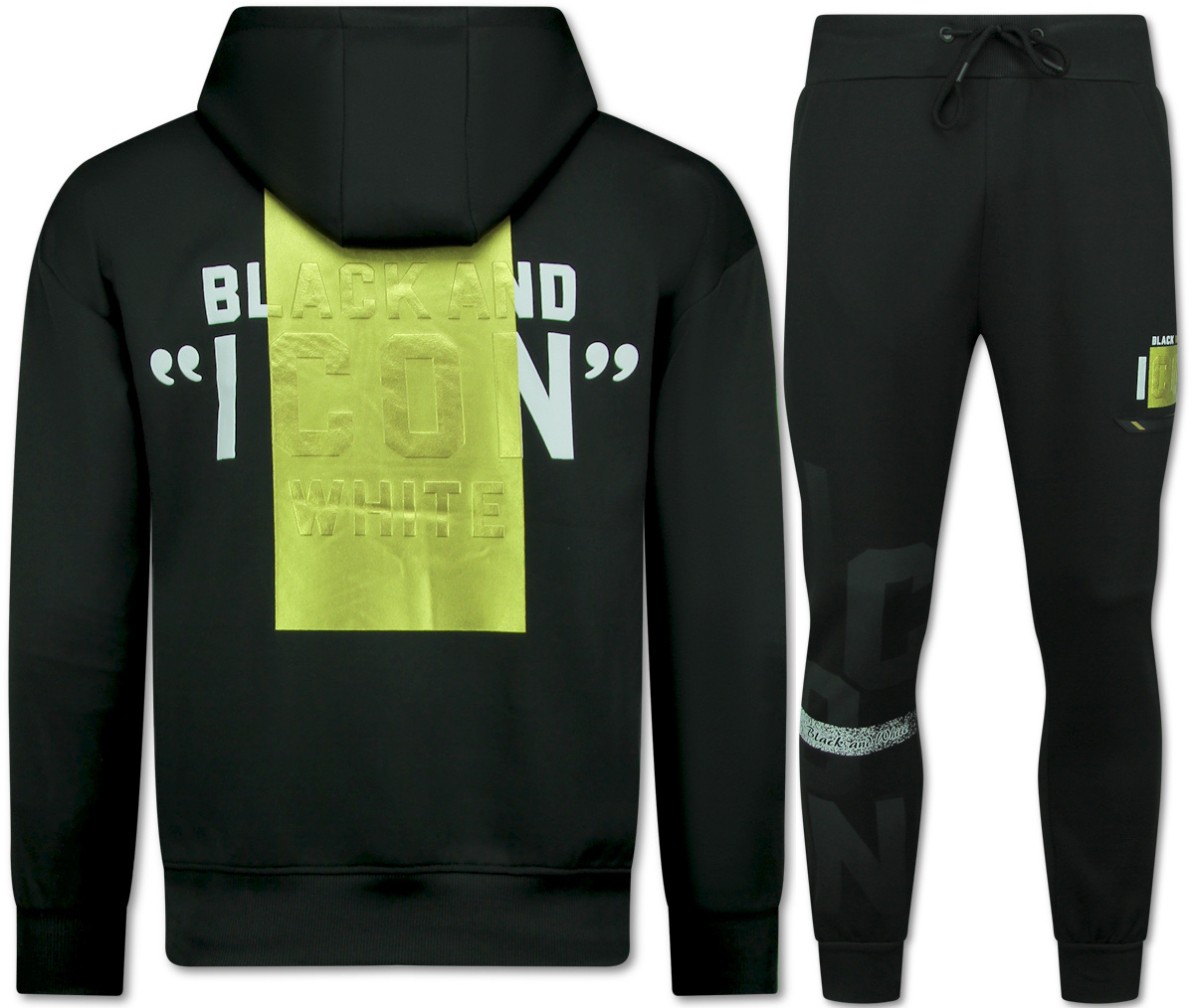 ICON Hoodie Gouden Print - Joggingpak Heren Volwassenen - Trainingspakken Heren - 3789 - Zwart