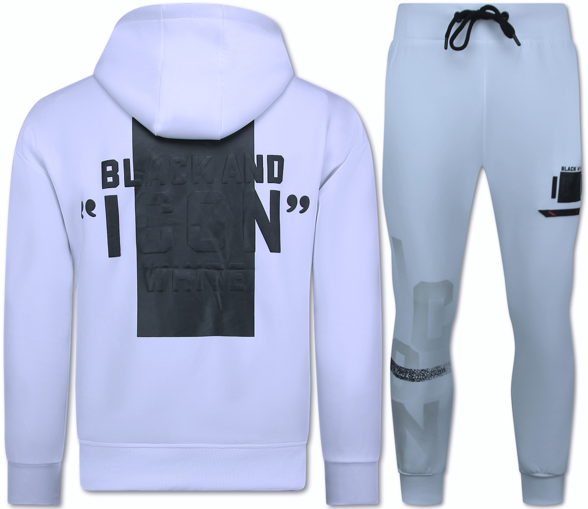 ICON Trui Twinset Zwarte Print - Joggingpak Heren Volwassenen - Trainingspakken Heren - Huispak - 3789 - Wit