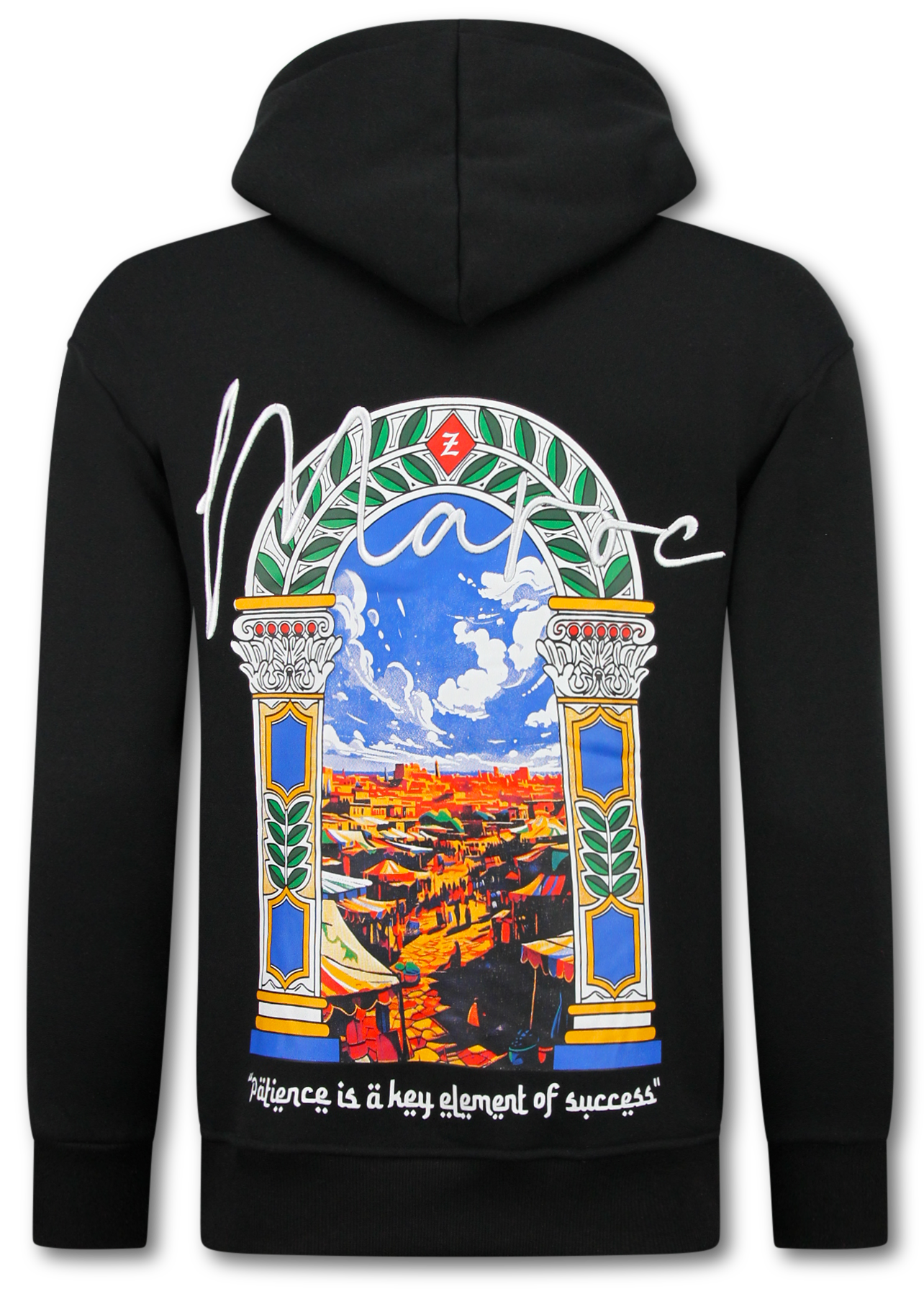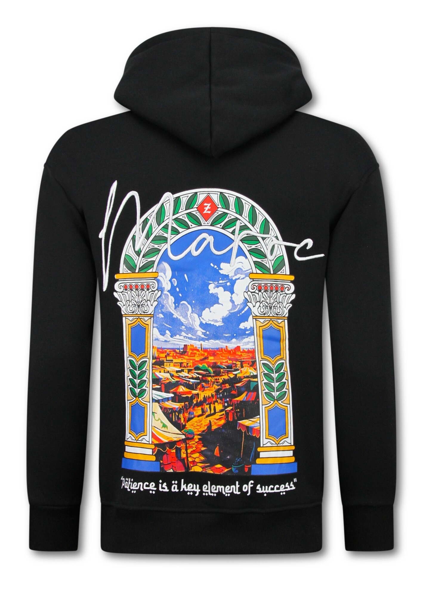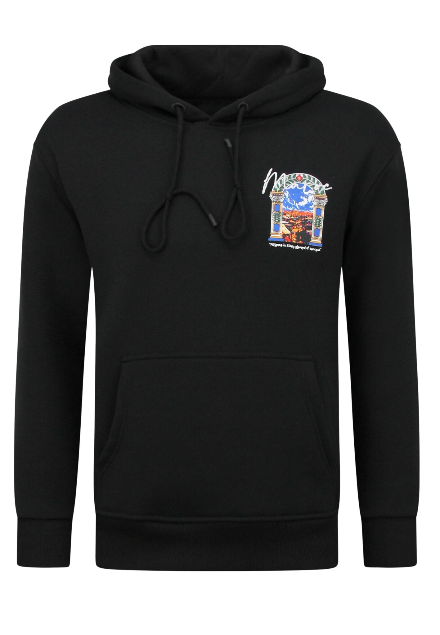 Oversized Hoodie Heren met Capuchon - Maroc Print - Dik Geweven - 5818 - Zwart