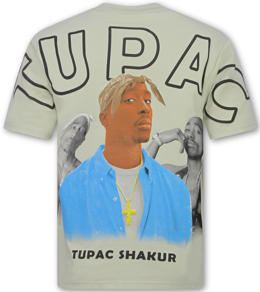 Tupac Shakur - Oversized T shirt Heren - T shirt Heren met Print - 2Pac Tshirt met Opdruk -1791- Beige